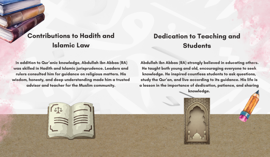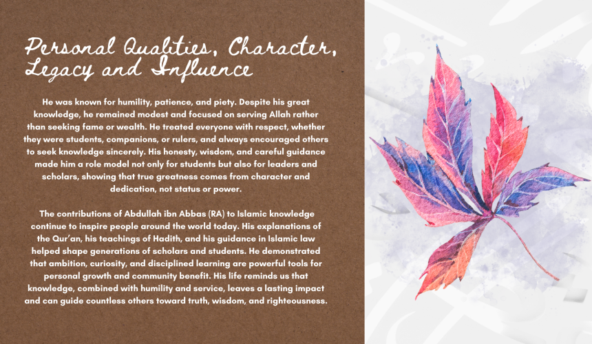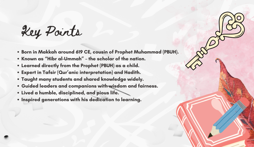 Hazrat Abdullah ibn Abbas رضي الله عنه was one of the companions of Prophet Muhammad ﷺ and was a young, highly respected cousin of Prophet Muhammad ﷺ, known as the “Ocean of Knowledge” (Hibr al-Ummah) for his unparalleled expertise in Quranic exegesis, Islamic jurisprudence (fiqh), hadith, and Arabic, becoming a leading scholar who mentored even senior companions and caliphs